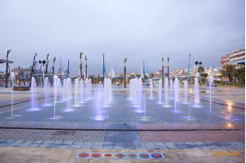 旱式喷泉:也称旱地喷泉。喷头和灯光设置在盖板下端,喷水时,水柱通过盖板筚子或花岗岩铺装孔喷出,既不占休闲空间又能观赏喷泉,不喷水时,不阻碍交通,可照常行人,旱式喷泉更多的使人能亲近水,真正做到人与水共嬉、共舞。这类喷泉非常适合于宾馆、饭店、商场、大厦、街景小区等场所。