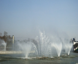 漂浮式喷泉也称湖面喷泉整座水景喷泉的管道系统等喷泉设备全部安装在浮箱上,所以喷泉设备的运行不受季节性水位高低的影响。浮箱是采用钢板或不锈钢板焊接而成,箱体均采用防腐处理,确保其使用寿命。漂浮式喷泉制作、安装工艺技术性强,但喷泉设备维护方便,易于保养。在大型自然湖泊或各种人工湖中广泛应用。